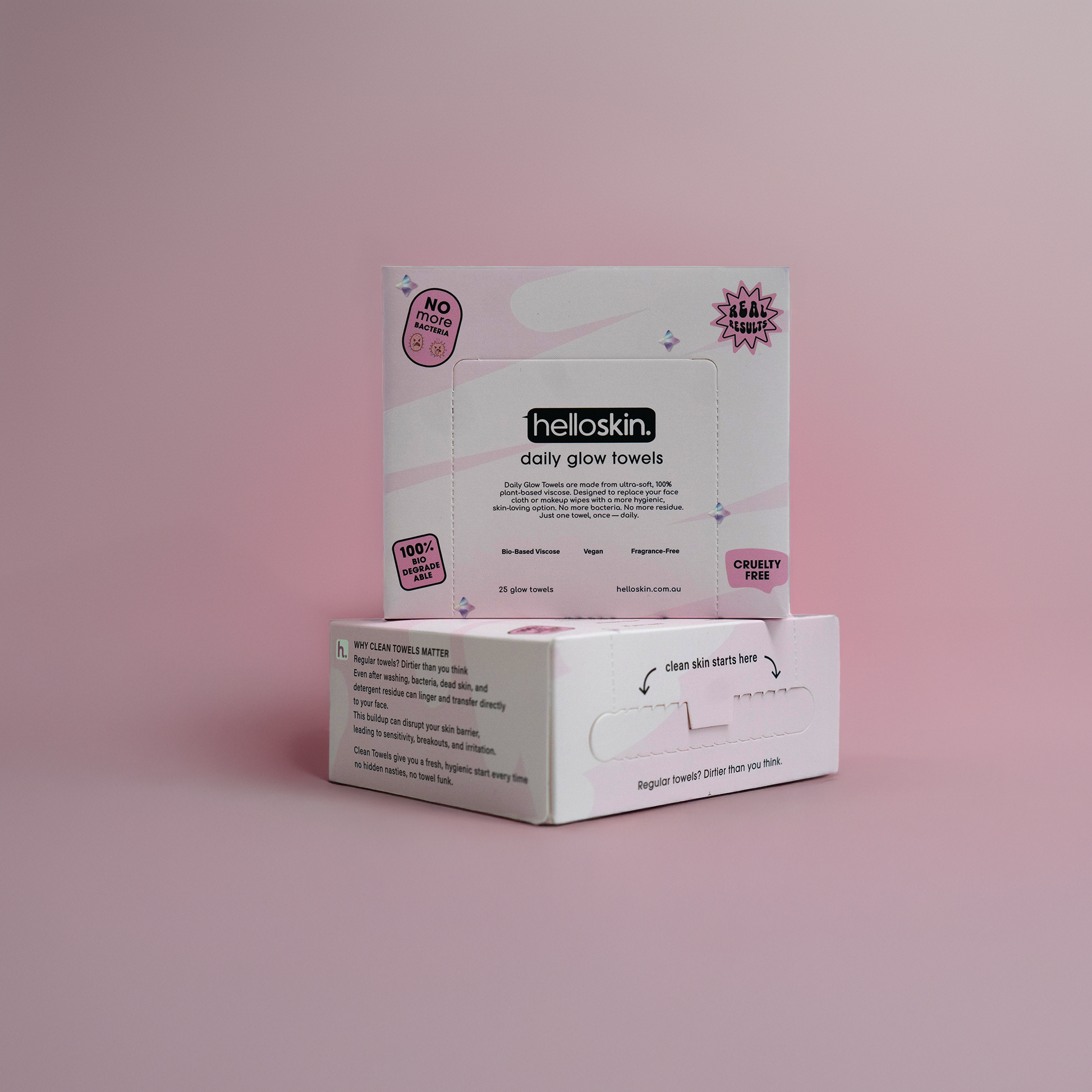 Traditional towels are loaded with leftover oils, bacteria, and debris — and guess where that ends up? On your skin. Helloskin towels are designed for one-time use, so every glow starts fresh.
